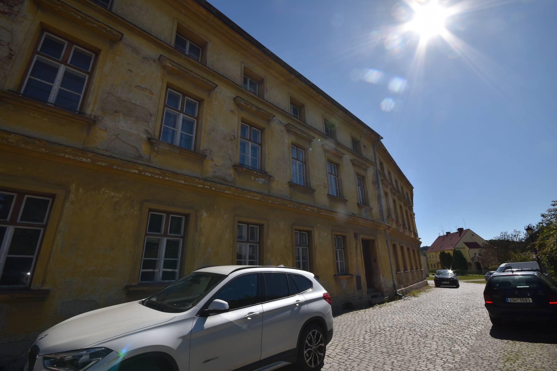 K domu náleží velké a prostorné nádvoří, které slouží k parkování osobních automobilů. Nádvoří zároveň nabízí příjemné místo k posezení a odpočinku, například u kávy se sousedy.